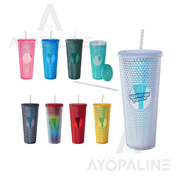 Vaso de doble pared con tachuelas de diamante ostentoso tipo starbucks