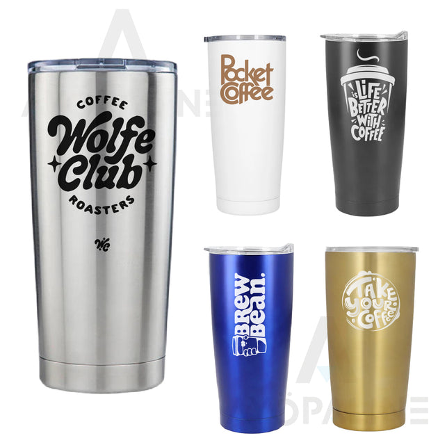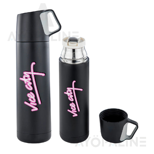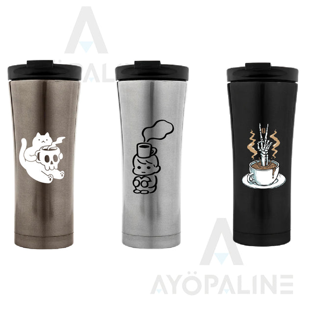 Termo de doble pared de acero inoxidable con tapa que se utiliza como vaso. KIA