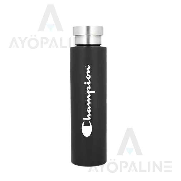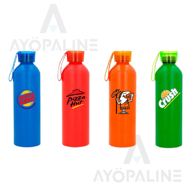 Cilindro de acero inoxidable, con tapa enroscable y correa de poliéster.
