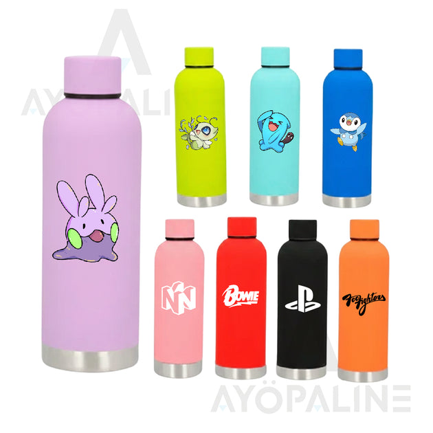 Termo de acero inoxidable de doble pared acabado rubber y tapa enroscable.