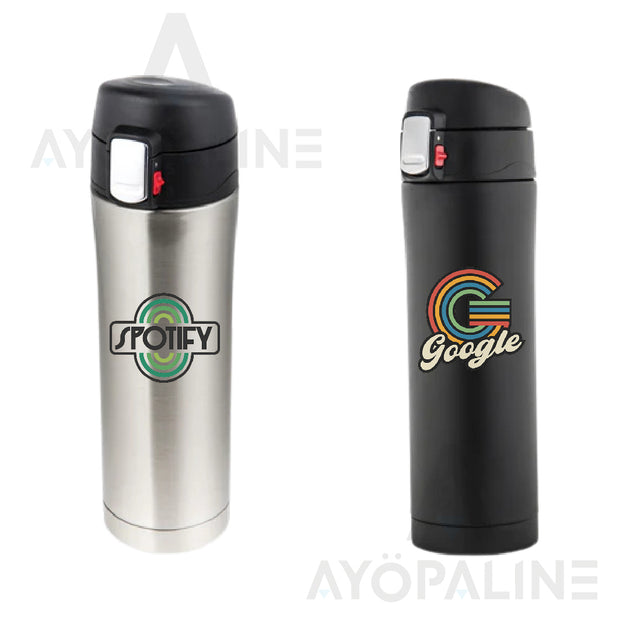 Termo de acero inoxidable con doble pared, tapa que evita derrames. KENUX