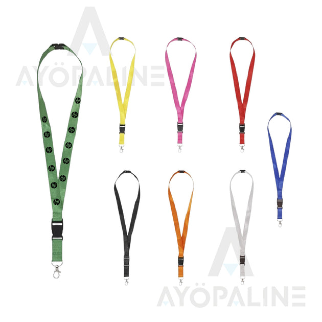 Cinta portagafete con broche de seguridad, clip desmontable de plástico y gancho metálico.