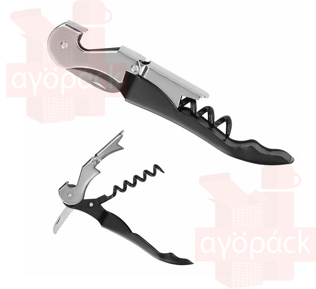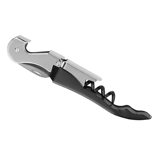 Sacacorchos de dos pasos de acero inoxidable con navaja y destapador.