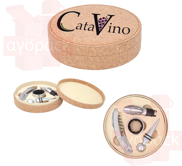 Set de vino con estuche de corcho