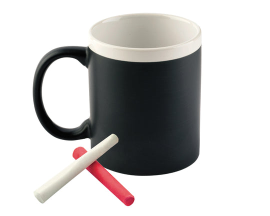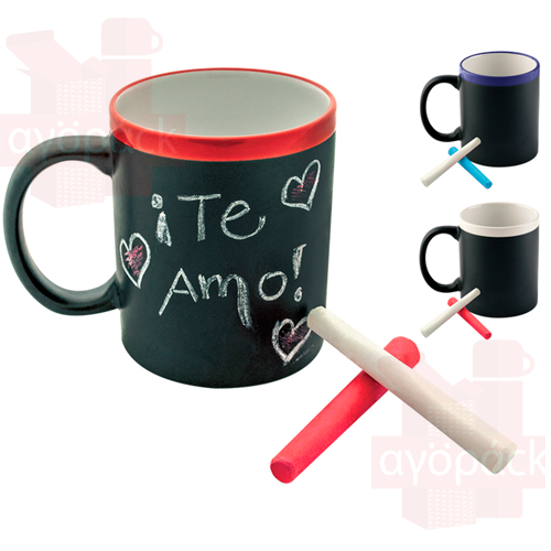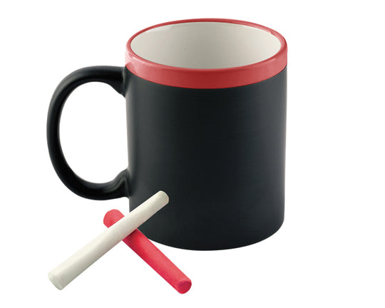 DEFINICION:Taza de cerámica con acabado mate, color blanco en el interior y filo en rojo, incluye un juego de gises (no tóxicos) en color rojo y blanco para escribir mensajes en el exterior de la taza. ...Precio regular $62.00Precio regular $62.00 -