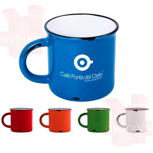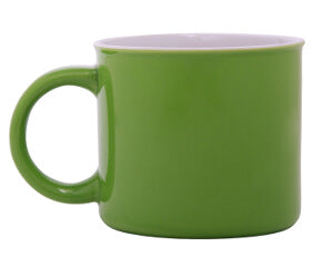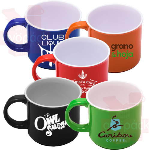 Taza de cerámica bicolor acabado brillante de boca abierta dvc