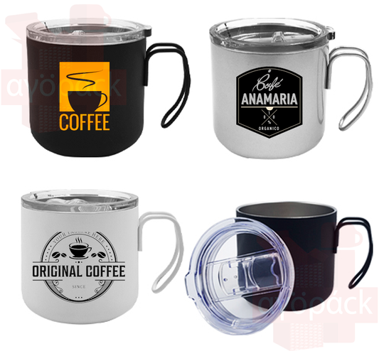 DEFINICION: Taza con doble pared de acero inoxidable, asa metálica y tapa traslúcida de cierre a presión con seguro deslizable y boquilla. Incluye bolsa y caja individual. MATERIAL: Acero Inoxidable MEDIDAS: Alto: 8.5 cm. Ancho: 8.5 cm. C / PIEZAS CAJA: 60 pzs....Precio regular $170.00Precio regular $170.00 -