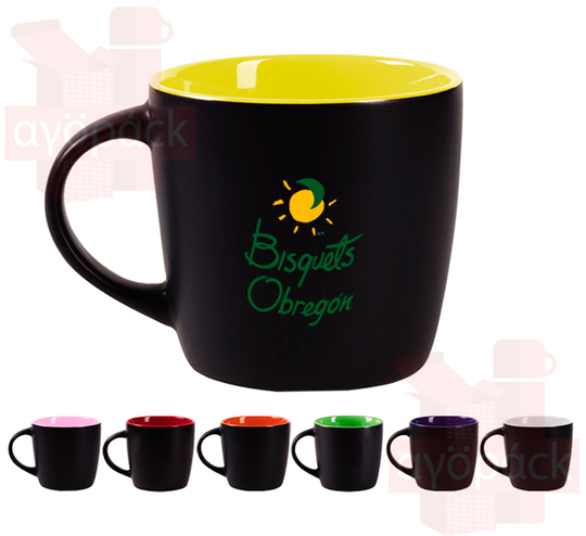DEFINICION: Taza de cerámica con cuchara bicolor. MATERIAL: Cerámica MEDIDAS: 9.8x9 cm C/PIEZAS CAJA : 36 pzas CAP:12 OZ.Precio regular $68.00Precio regular $68.00