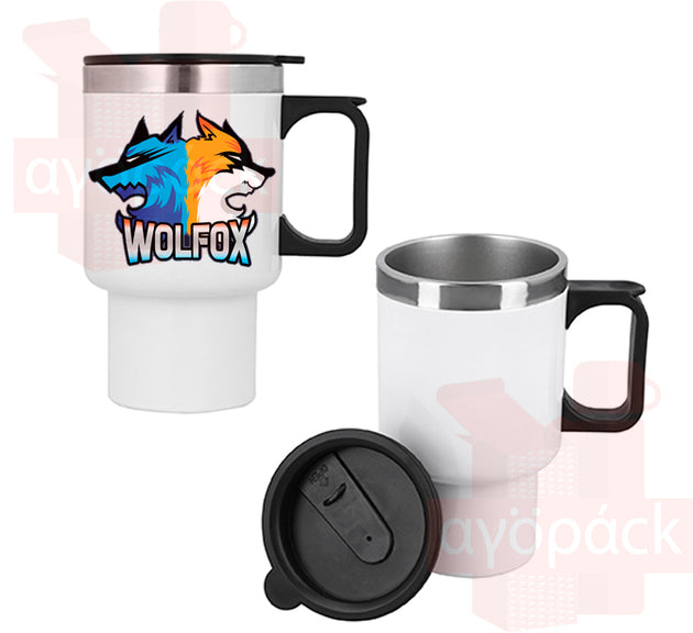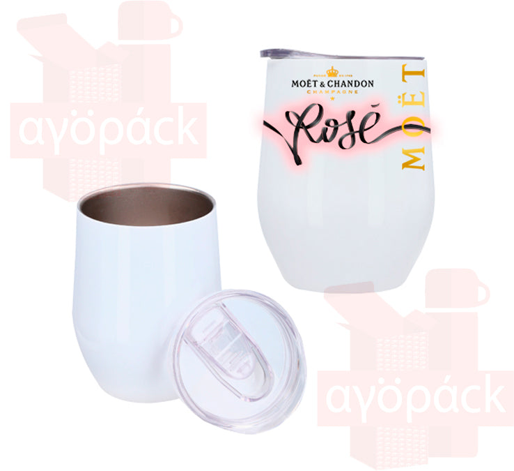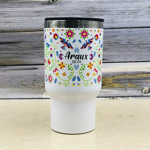 Termo sublimable de doble pared de acero inoxidable insulado al vacío. Incluye tapa de cierre a presión transparente con seguro deslizable.