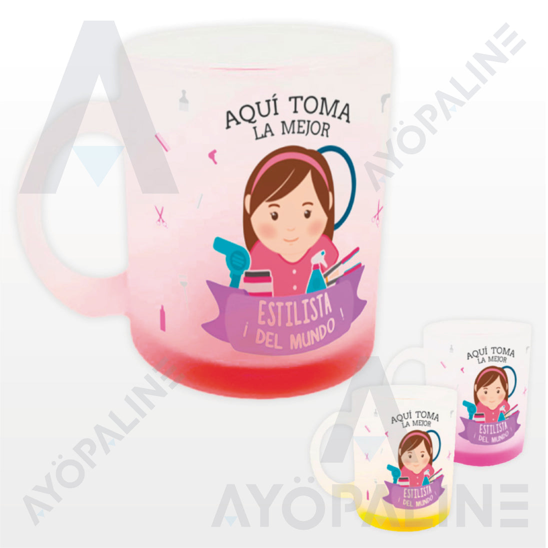 DEFINICION: Taza de Vidrio Satinada Fondo de Color