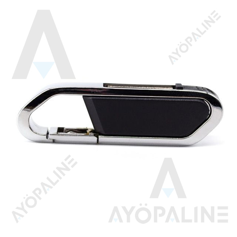 DEFINICION: Memoria USB de marco metálico con diseño de mosquetón para colgar.