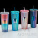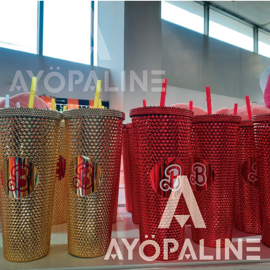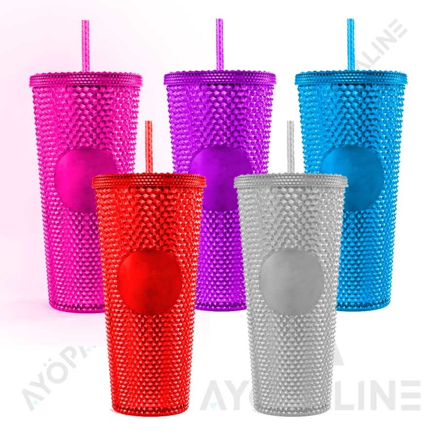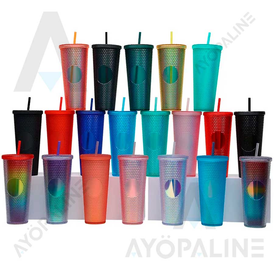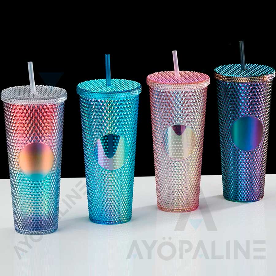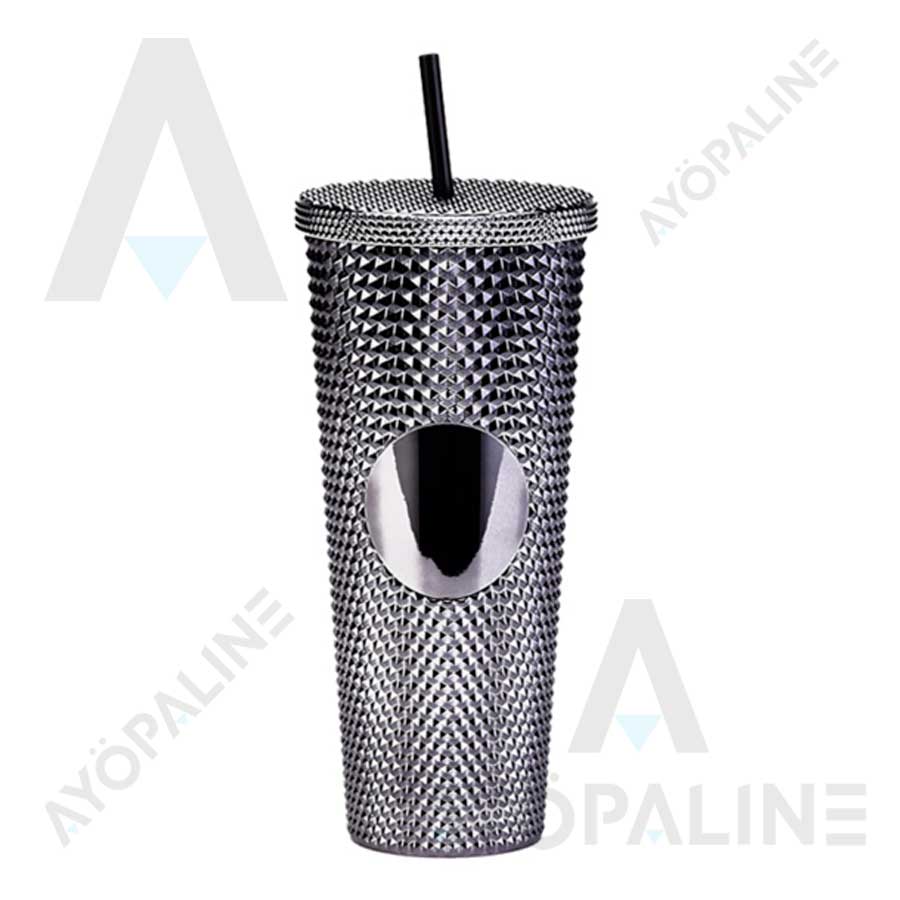 Vaso de diamante de plástico de doble pared, vaso de doble pared con tachuelas de diamante ostentoso, taza duriana fría sin logotipo