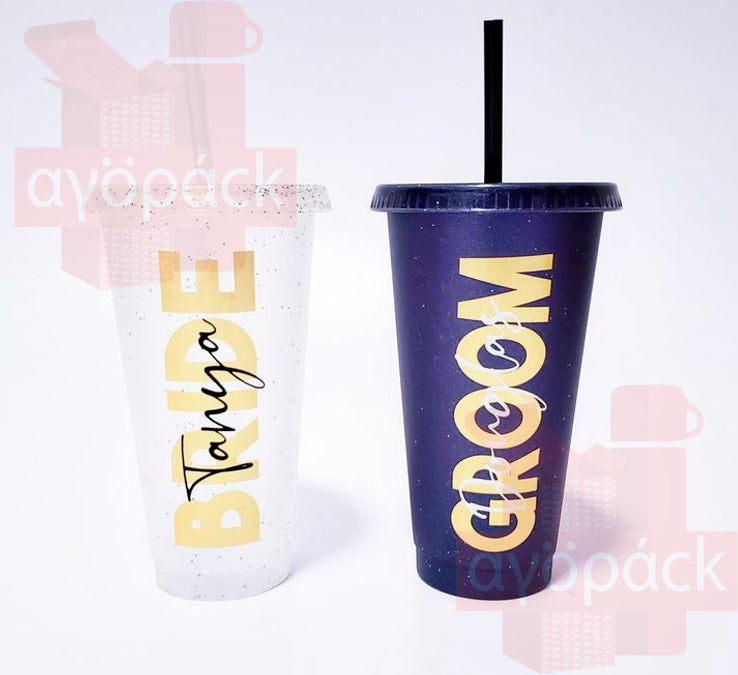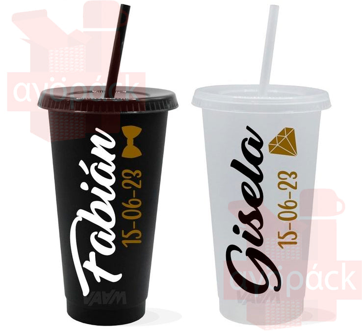 Vaso de plástico con tapa push y popote.